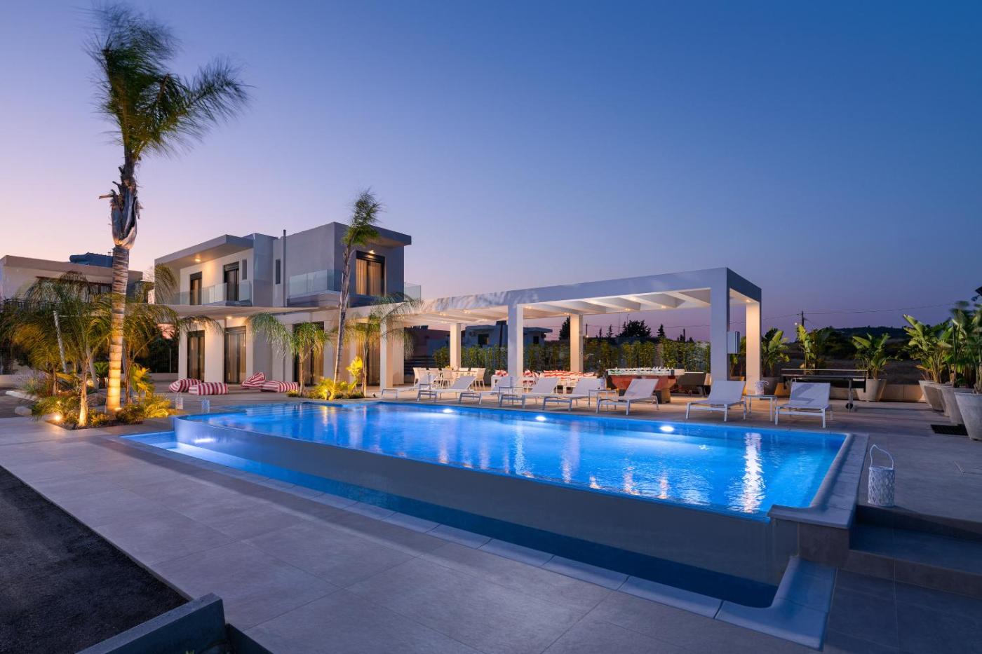 Boasting air-conditioned accommodation with a private pool, pool view and a patio, Villa Korali isin Pastida. This property offers access to a balcony, a pool table, free private parking and free WiFi. The accommodation offers airport transfers, while a car rental service is also available.