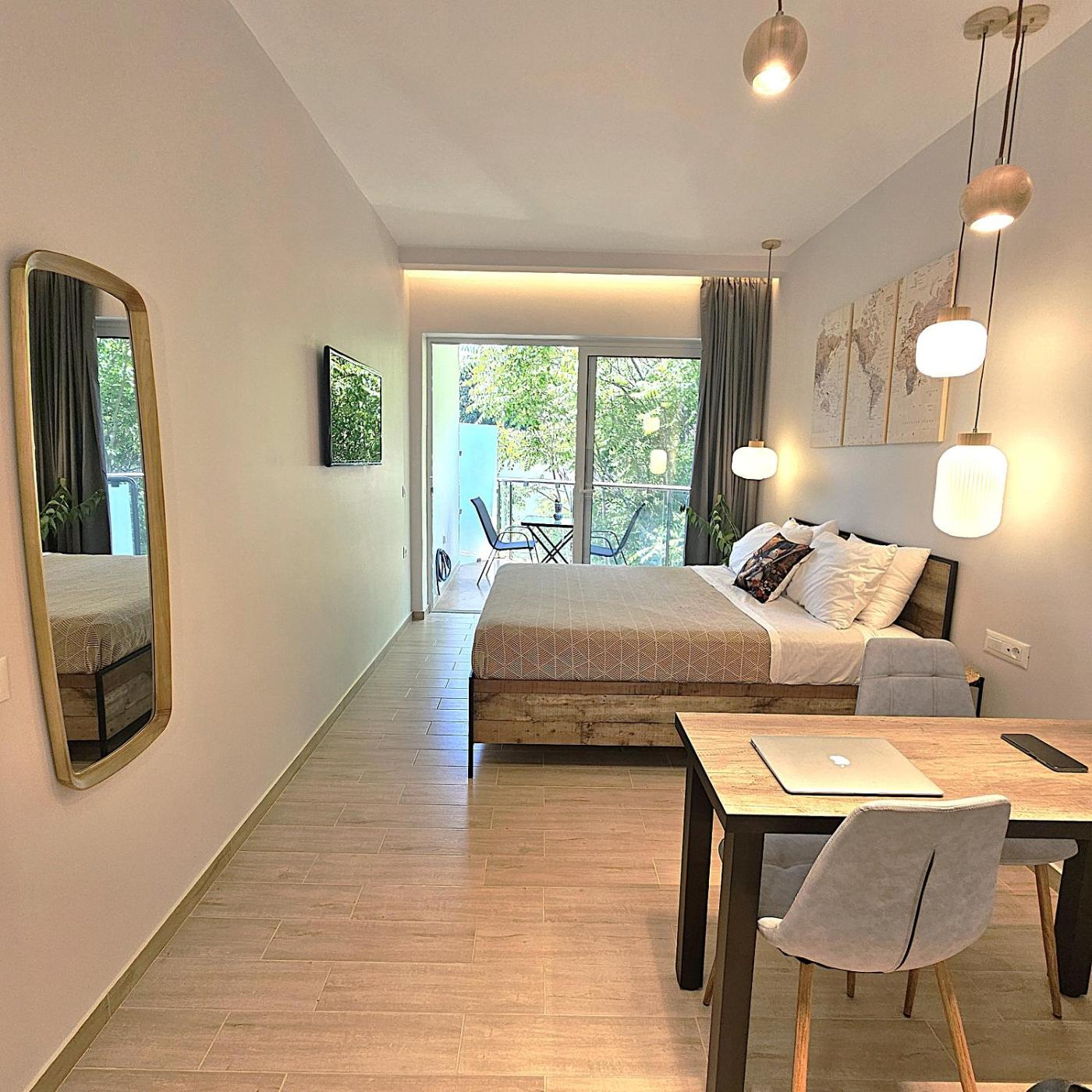 One-Bedroom Premium Apartment. The air-conditioned apartment has 1 bedroom and 1 bathroom with a shower and a hairdryer. The fully equipped kitchen features a stovetop, a refrigerator, kitchenware and a microwave. Boasting a terrace with garden views, this apartment also features soundproof walls and a flat-screen TV. The unit has 1 bed.